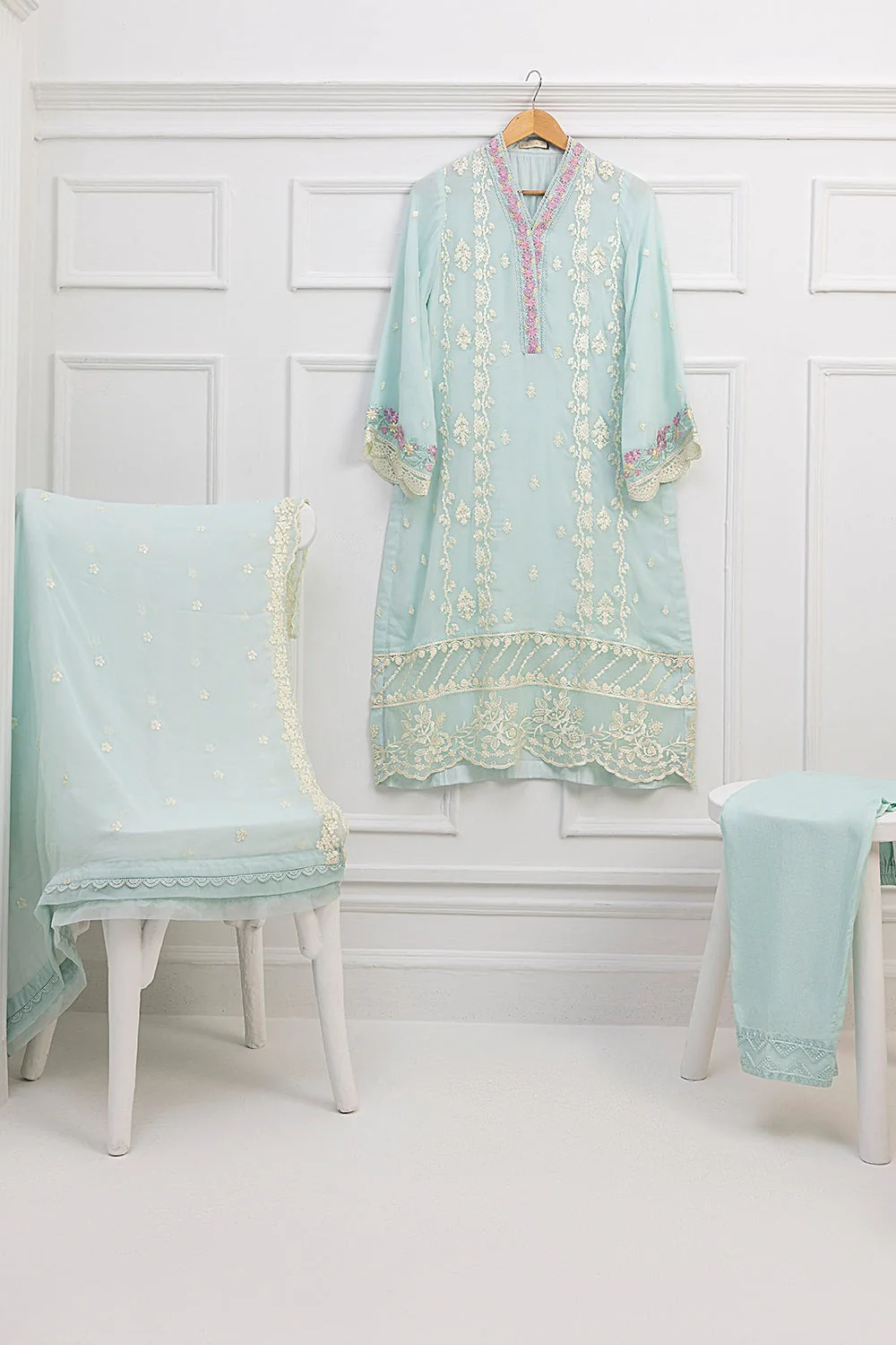 FOUR PIECE PURE ORGANZA SHIRT WITH DUPATTA AND PANTS