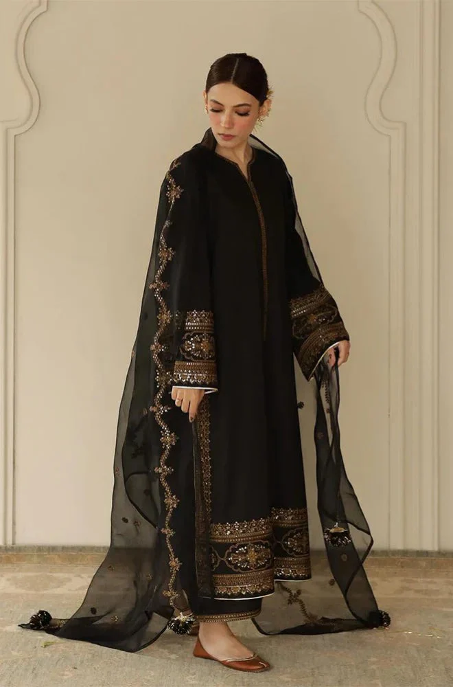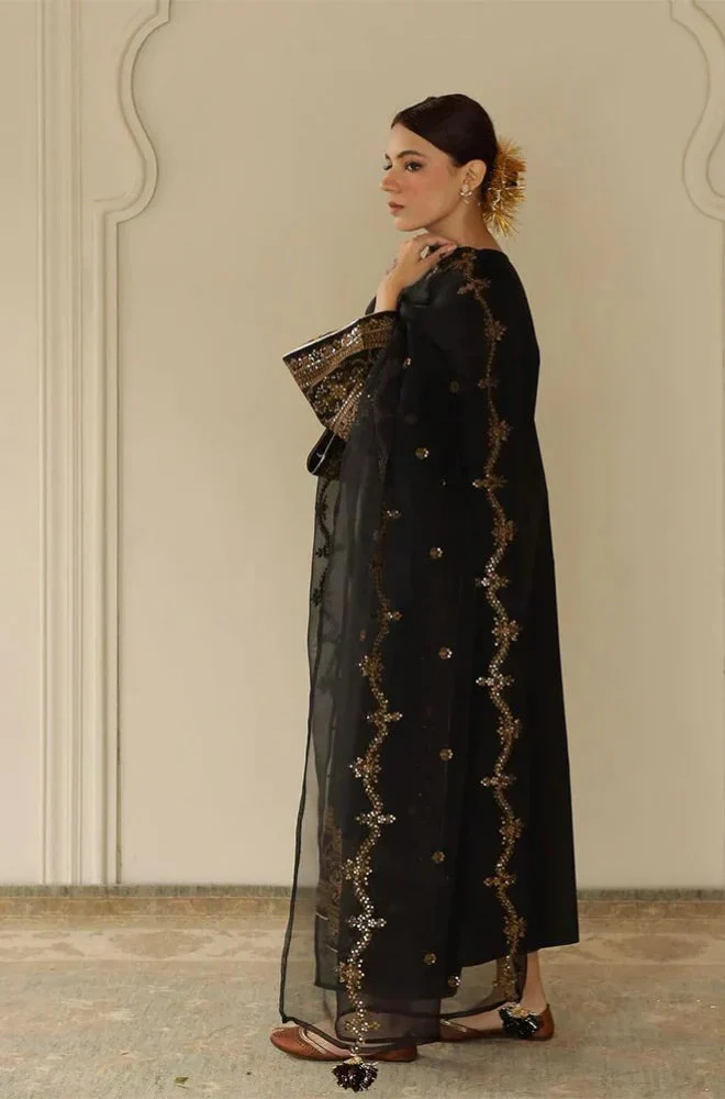 - Organza Front Piece Sequence Embroidered Neckline