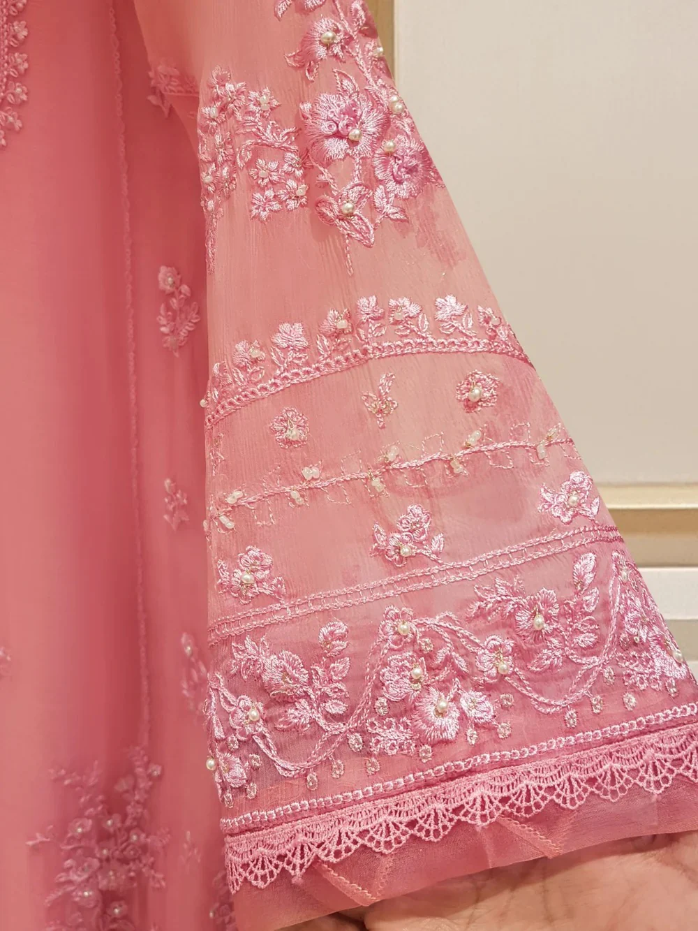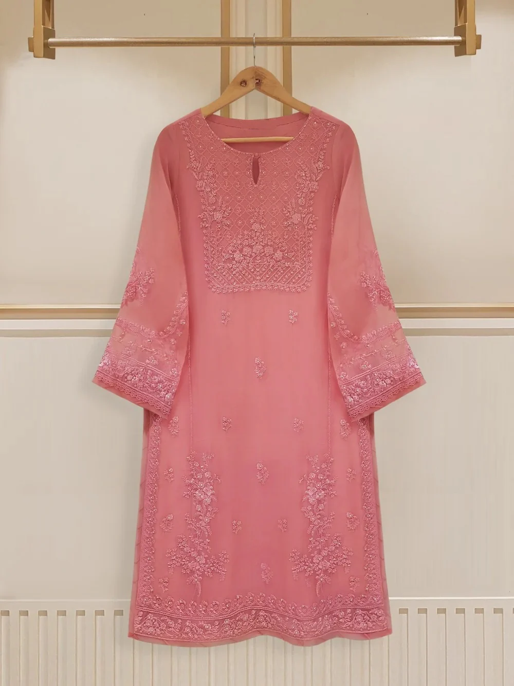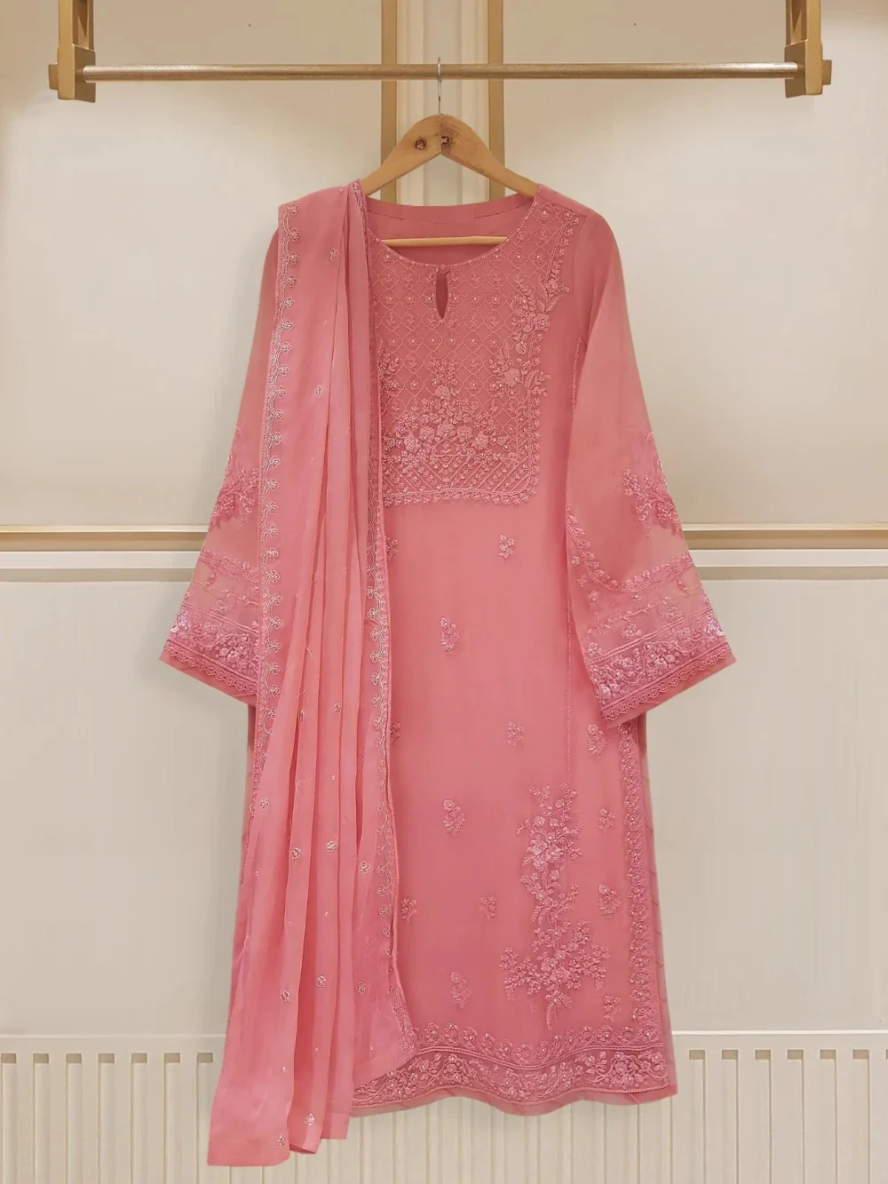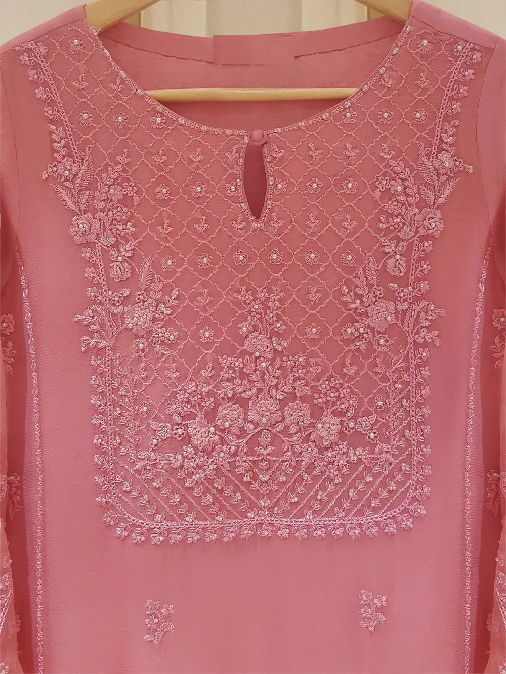 - Fully Embroidered & Embellished Organza Front Piece & Embellished Neckline