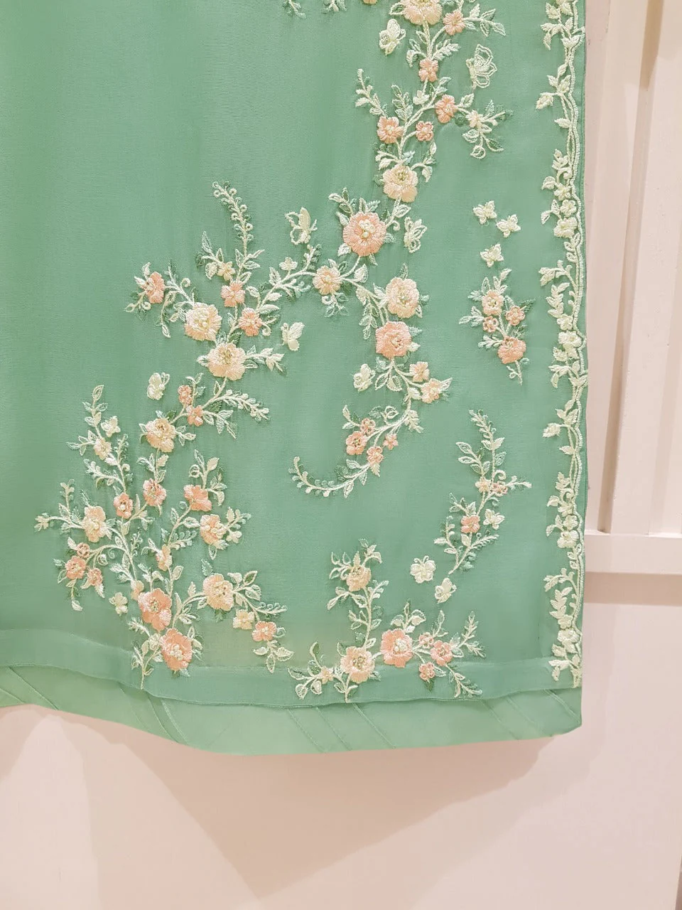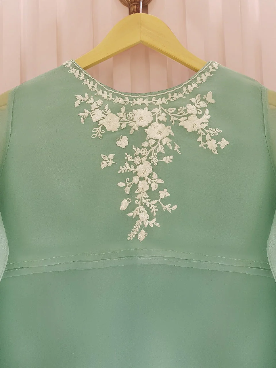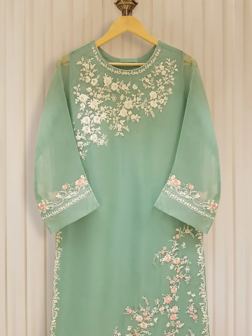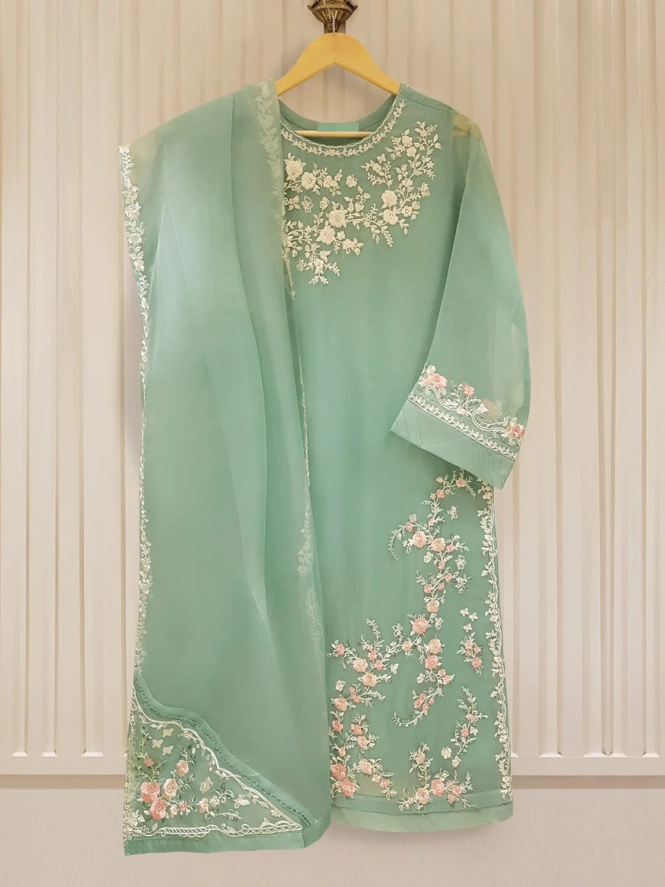 - Fully Embroidered & Embellished Organza Front Piece & Embellished Neckline