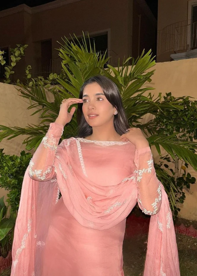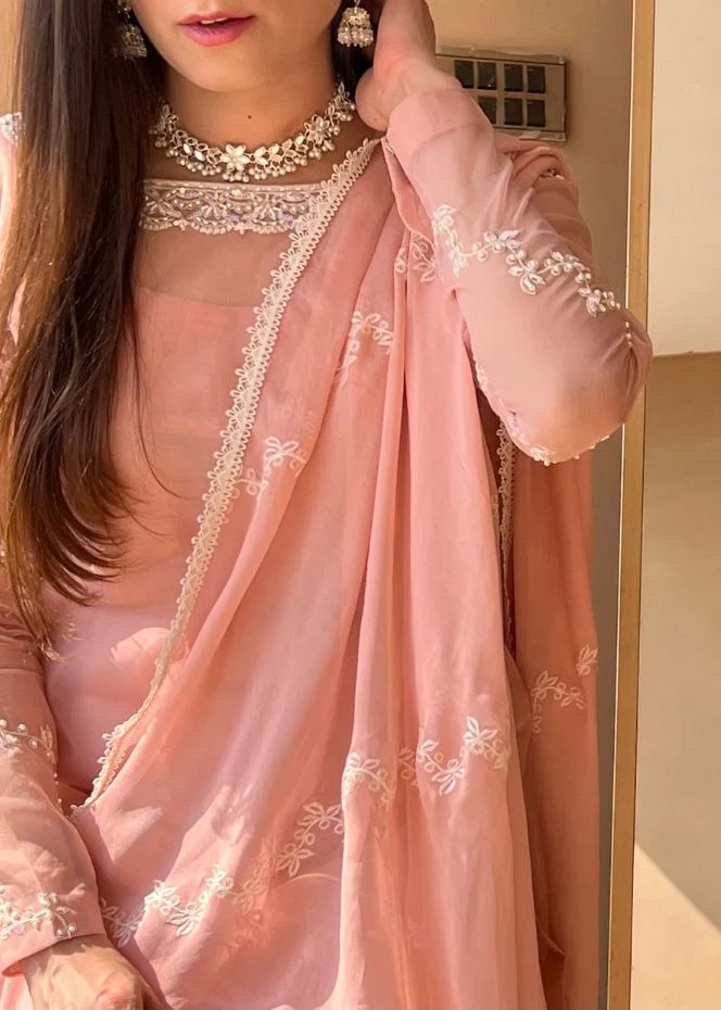 - Organza Front Piece Embroidered Neckline