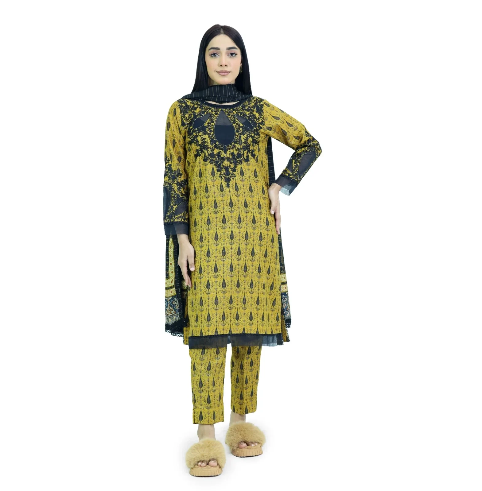 Package Includes: 3 Piece – (Top Bottom& Dupatta )