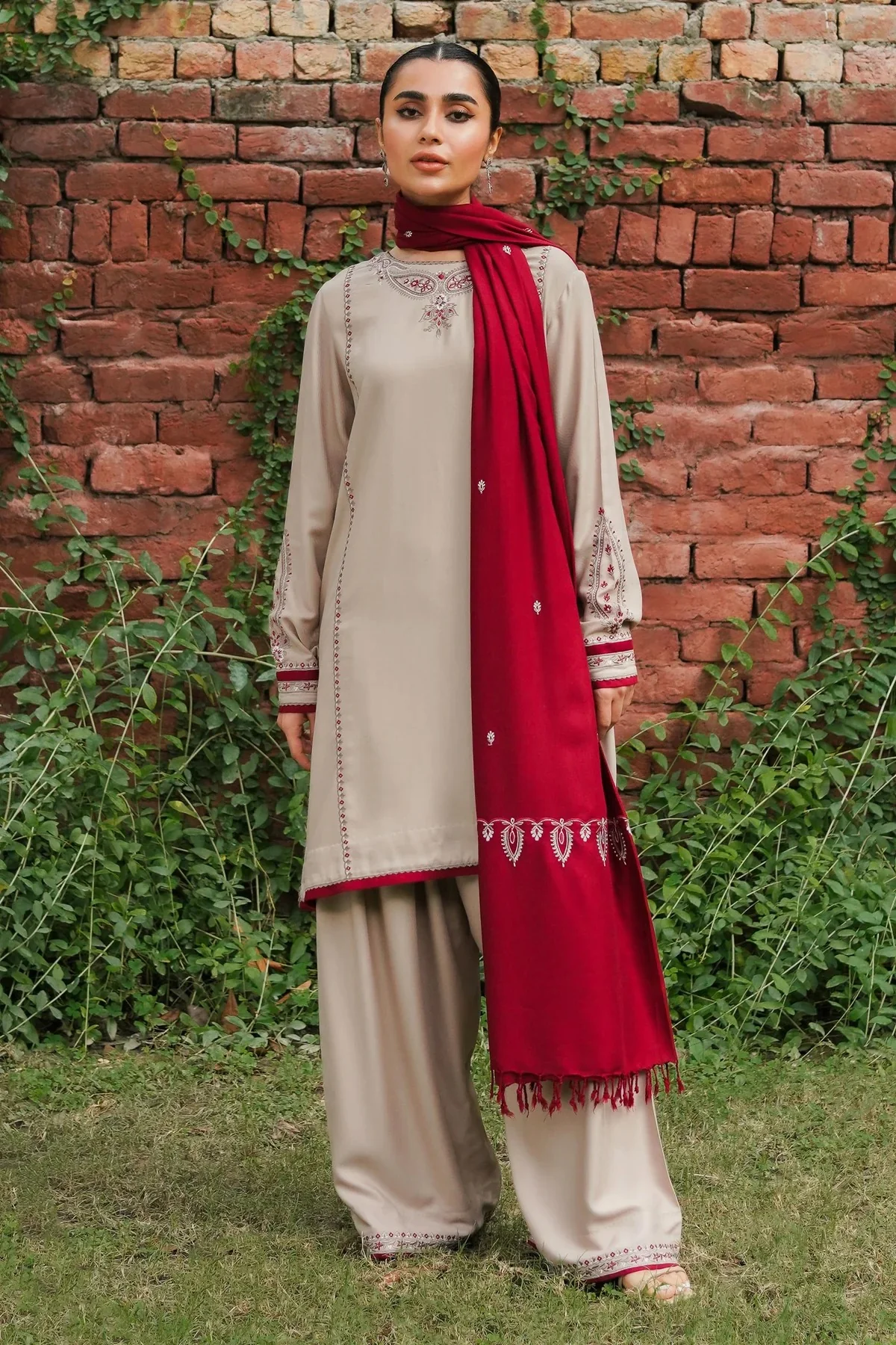 - Embroidered Twill shawl